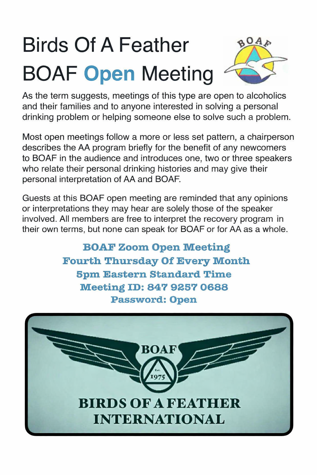 NEXT OPEN BOAF ZOOM MEETING