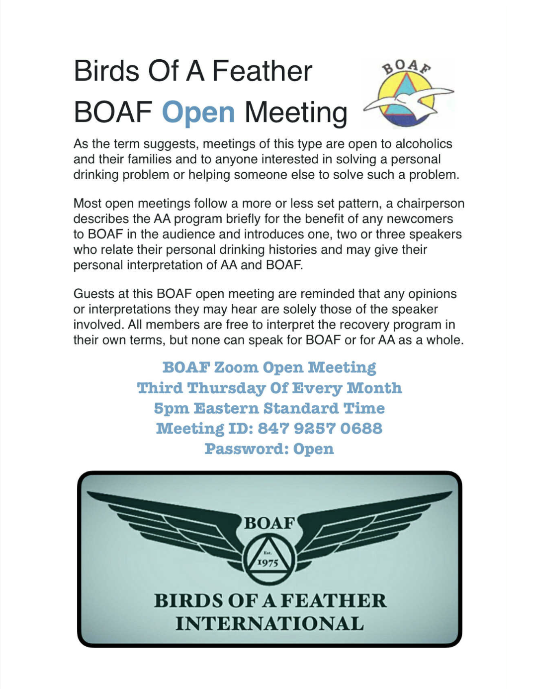 NEXT OPEN BOAF ZOOM MEETING